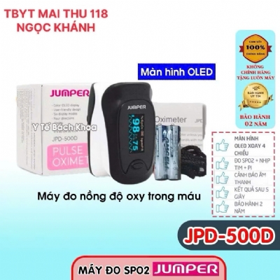 Máy đo nồng độ oxy trong máu Jumper SPO2 JPD-500D là thiết bị y tế dùng để theo dõi độ bão hòa của oxy trong máu kết hợp với nhịp tim bằng phương pháp cảm biến quang học thông qua đầu ngón tay với độ chính xác cao. Thiết bị đạt chứng nhận từ FDA (Cục quản lý Thực phẩm và Dược phẩm Hoa Kỳ), Mỹ, chứng nhận sản phẩm đủ điều kiện để được nhập khẩu vào Mỹ.
